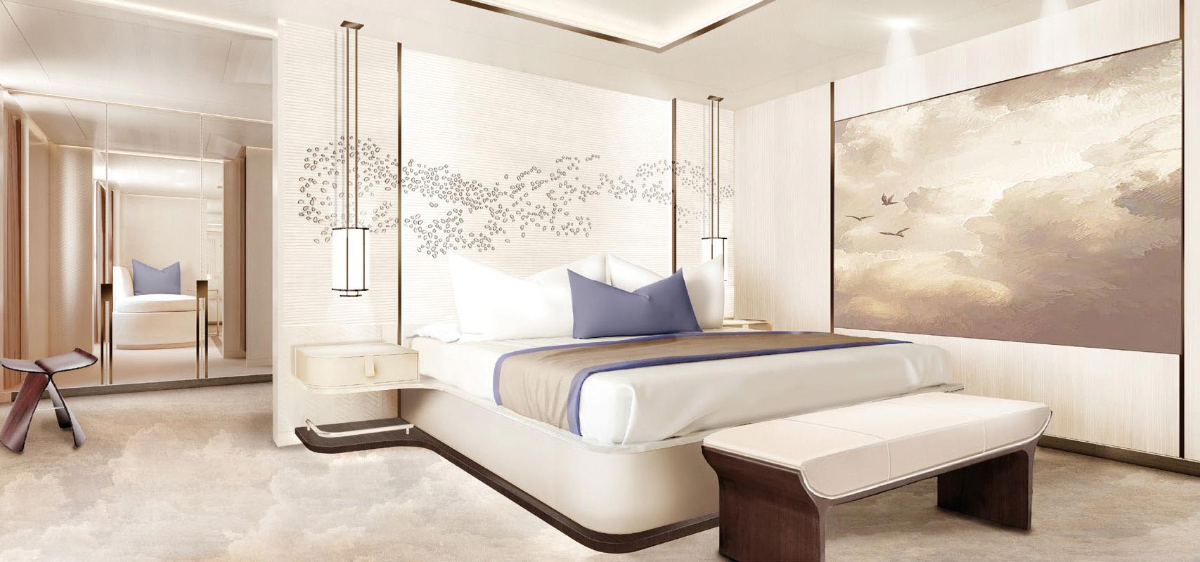 Externally she has the unmistakable pedigree of award-winning British designer Tim Heywood, who has given her long flowing lines a dynamic and athletic look. For the interior, Amels have called on the mastery of Winch Design to create spaces that are balanced, beautiful and uplifting.