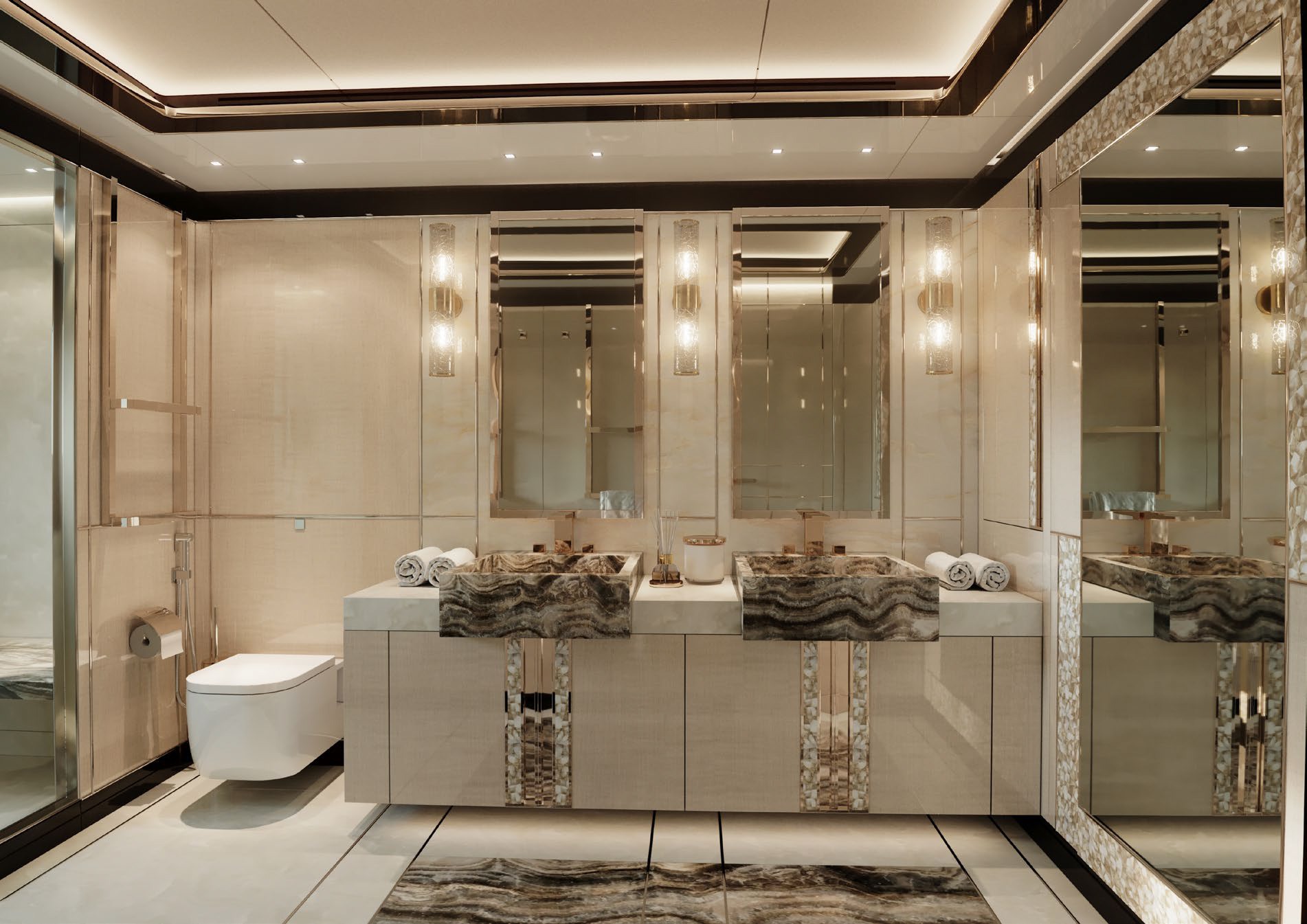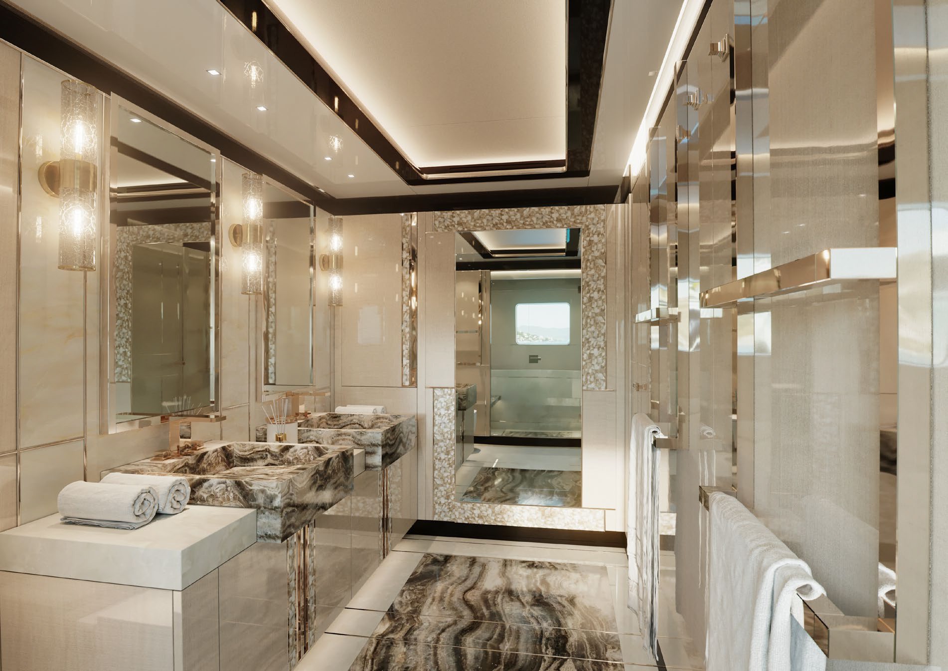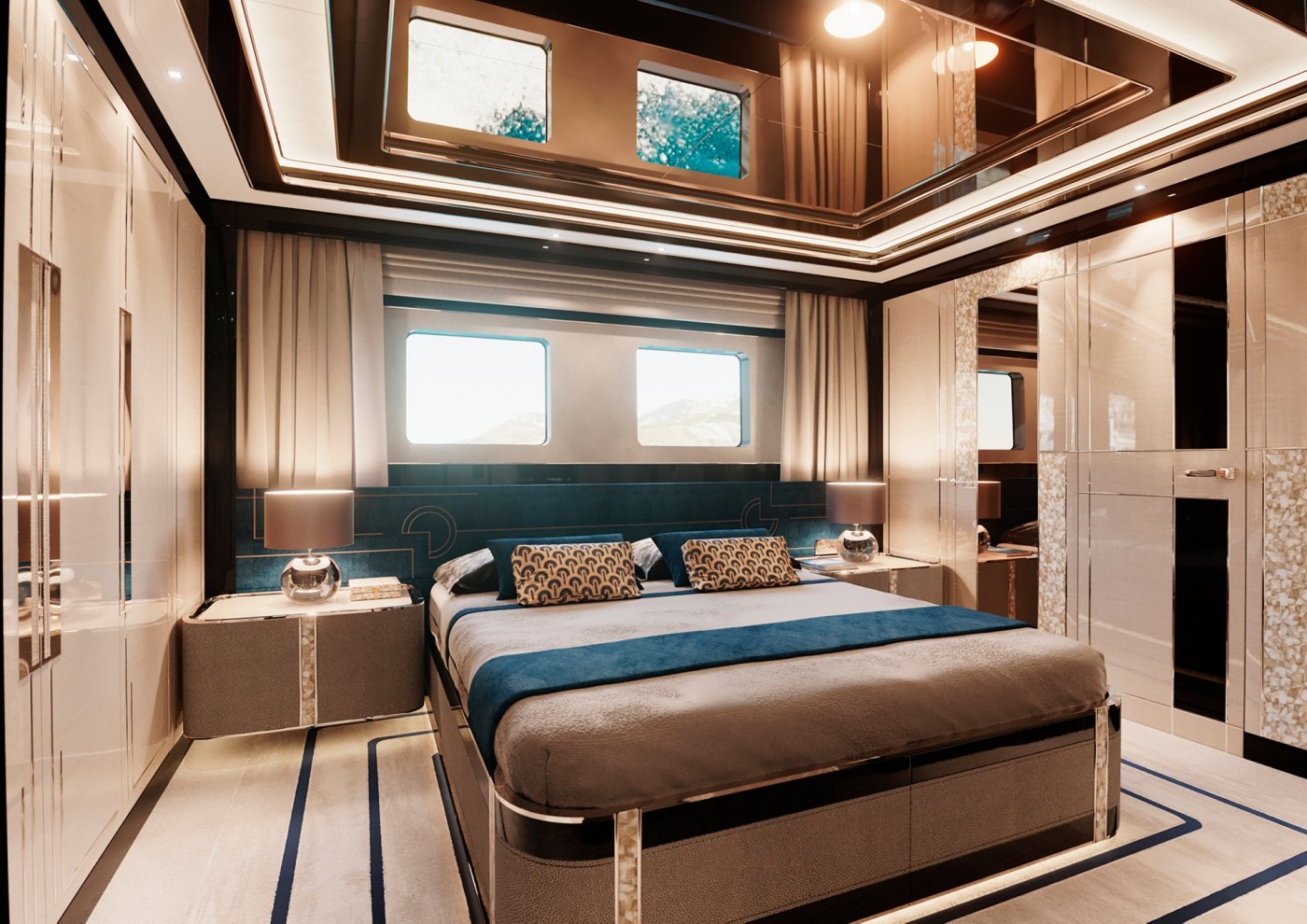 The GTT135 can accommodate 11 guests in 5 very spacious cabins, all with their own en-suites. At 120m square, her sundeck is the largest in her class giving owners and guests plenty of space to enjoy the beauty and freedom of the ocean. The sundeck is equipped with a full-bar, barbecue/teppanyaki grill, al-fresco dining area, high-end entertainment system and sunbathing areas. If the pool is chosen for the sundeck, there are options to include a shower and dayhead for optimum comfort.