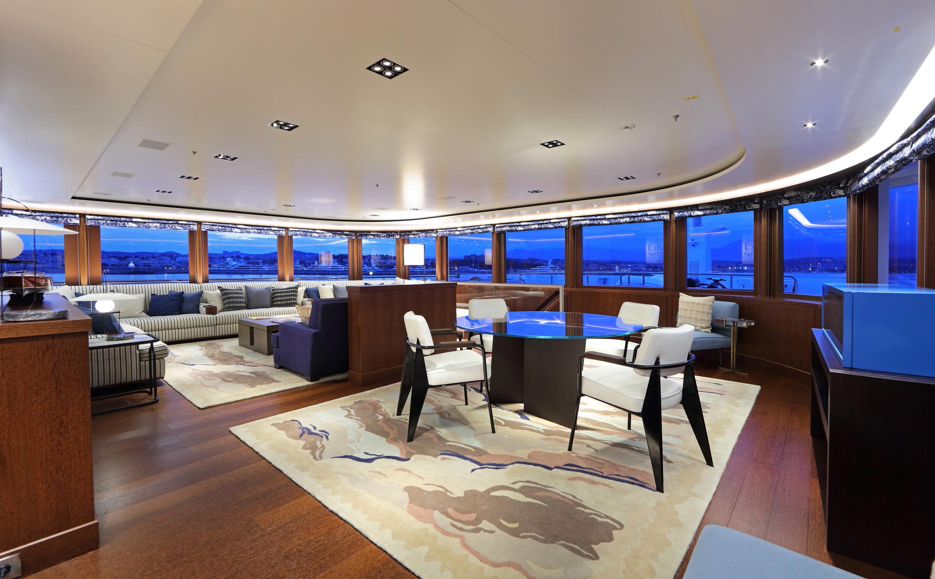 With a massive 2,100 GT volume she is a long range high quality luxury motor yacht with serious go anywhere sea keeping characteristics, heavy build specification and suitable for sailing in ice conditions in accordance with its class notation. Planet Nine has a commercially approved helideck suitable for an Agusta Grande dimensionally, or larger helicopter in weight, up to 8 tons, with enclosed below deck hangar.