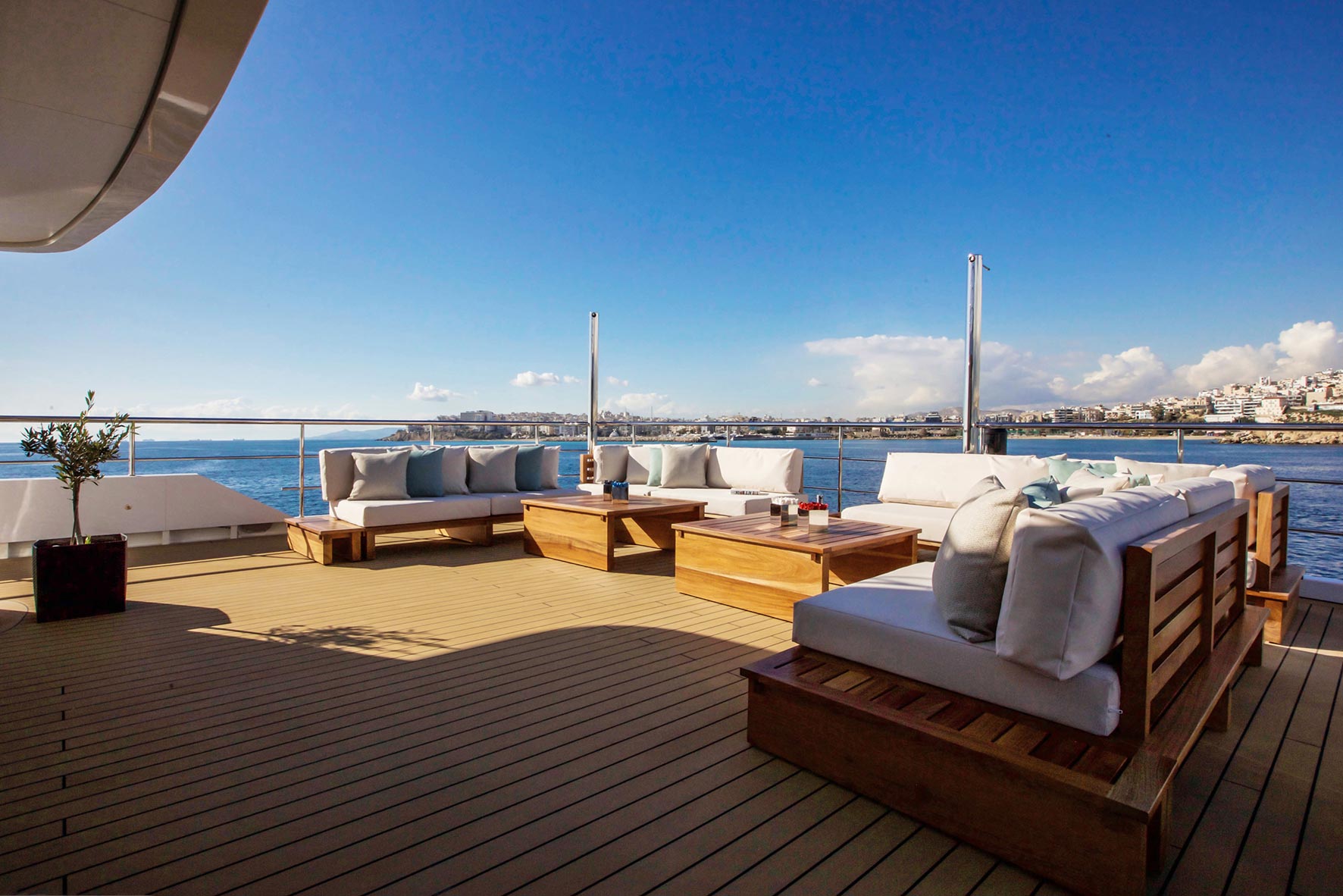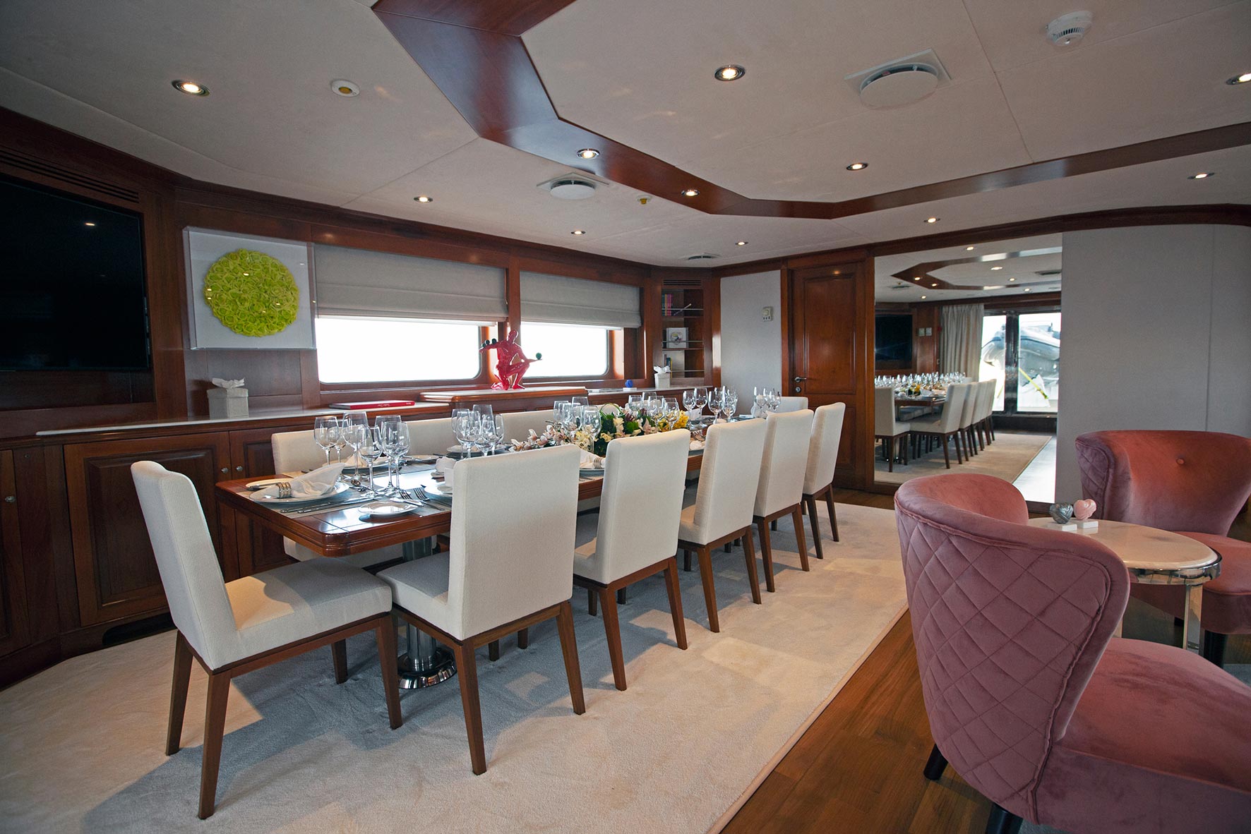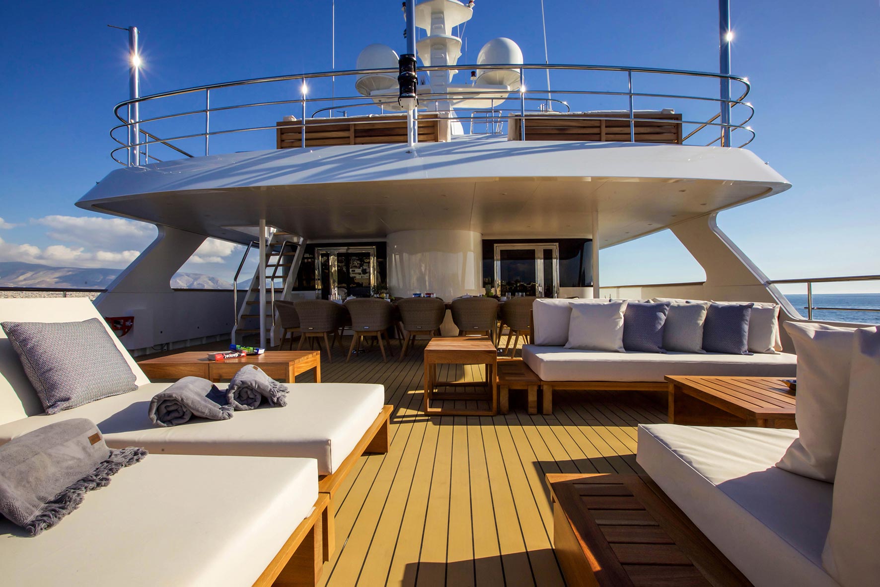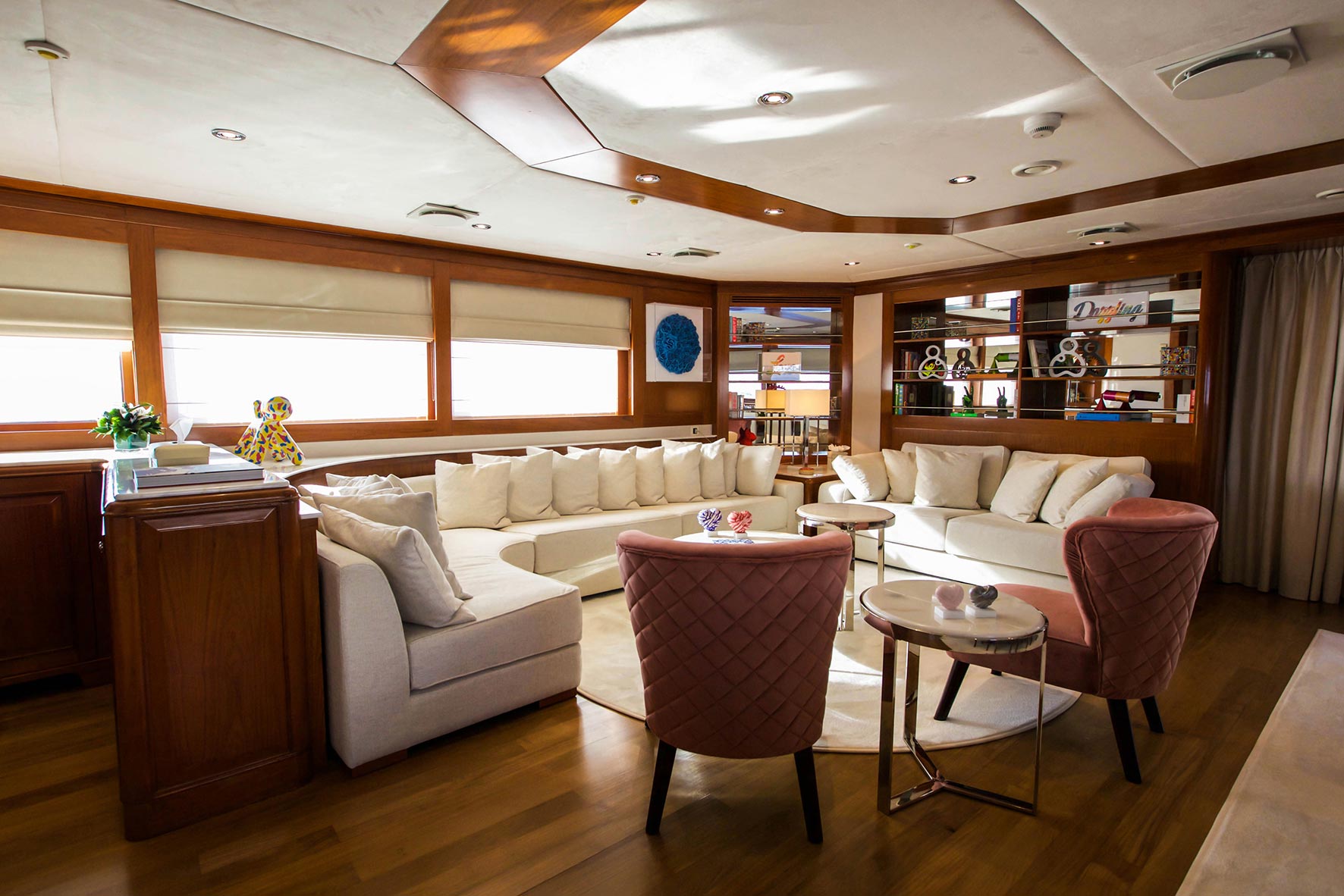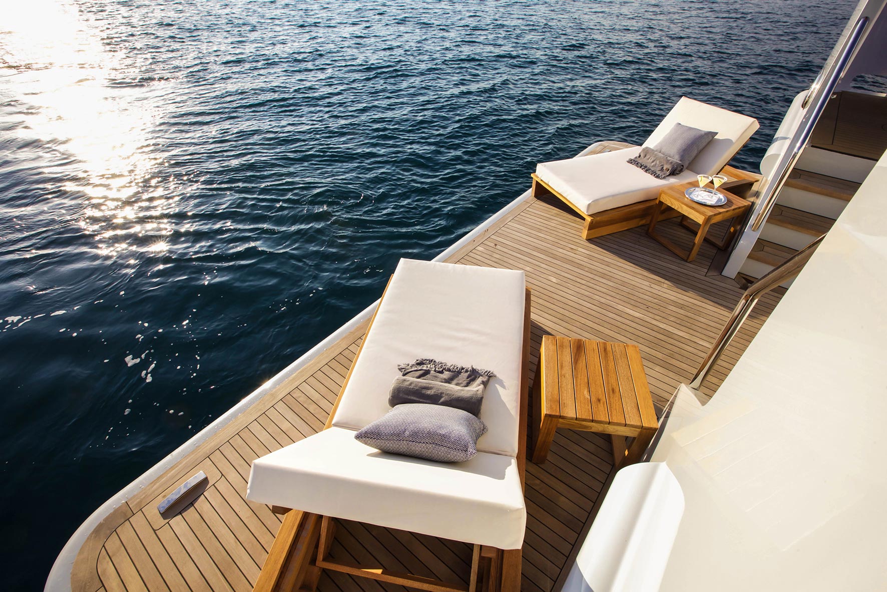 Previously named Etra her luxurious interior is designed by Andrea Pezzini and her exterior styling is by Blue Fin Yachts srl. Aspire’s interior layout sleeps up to 12 guests in 6 cabins. Beautiful furnishings and sumptuous seating feature throughout to create an elegant and comfortable atmosphere.