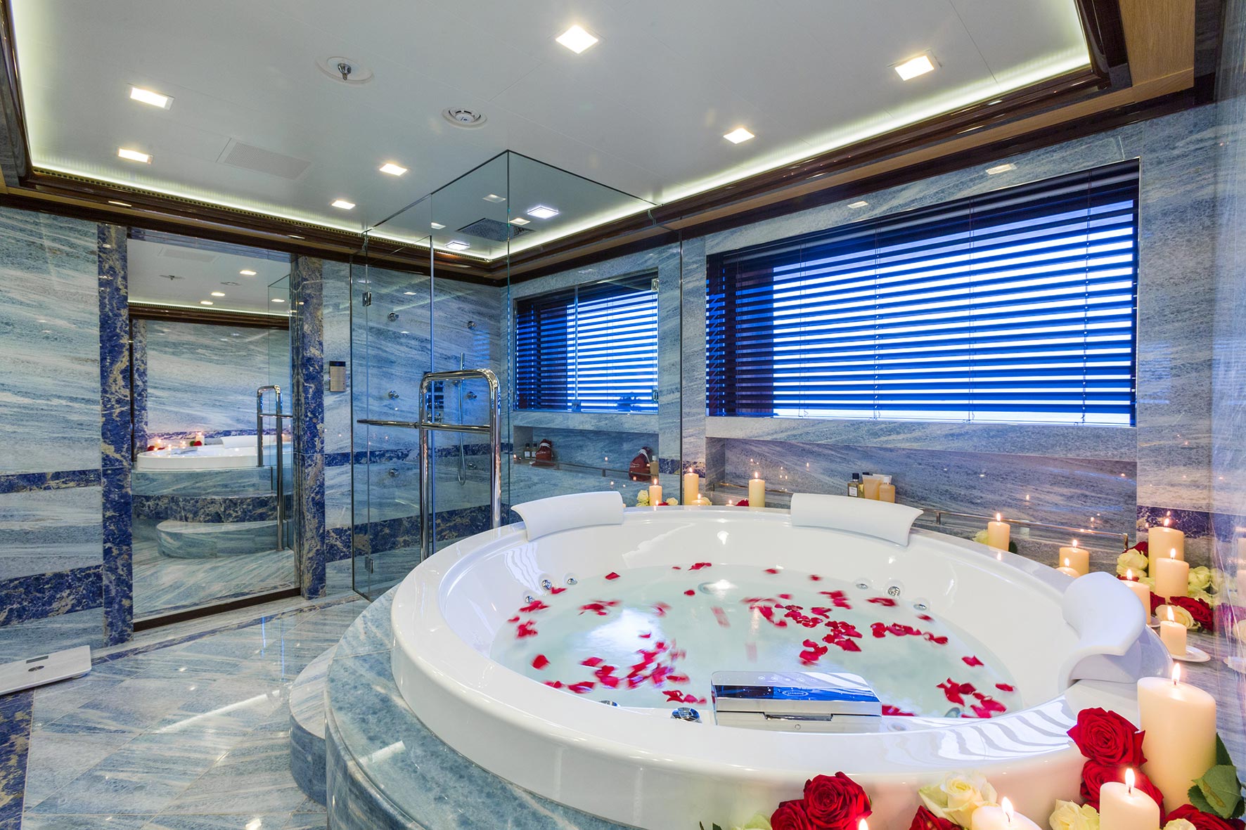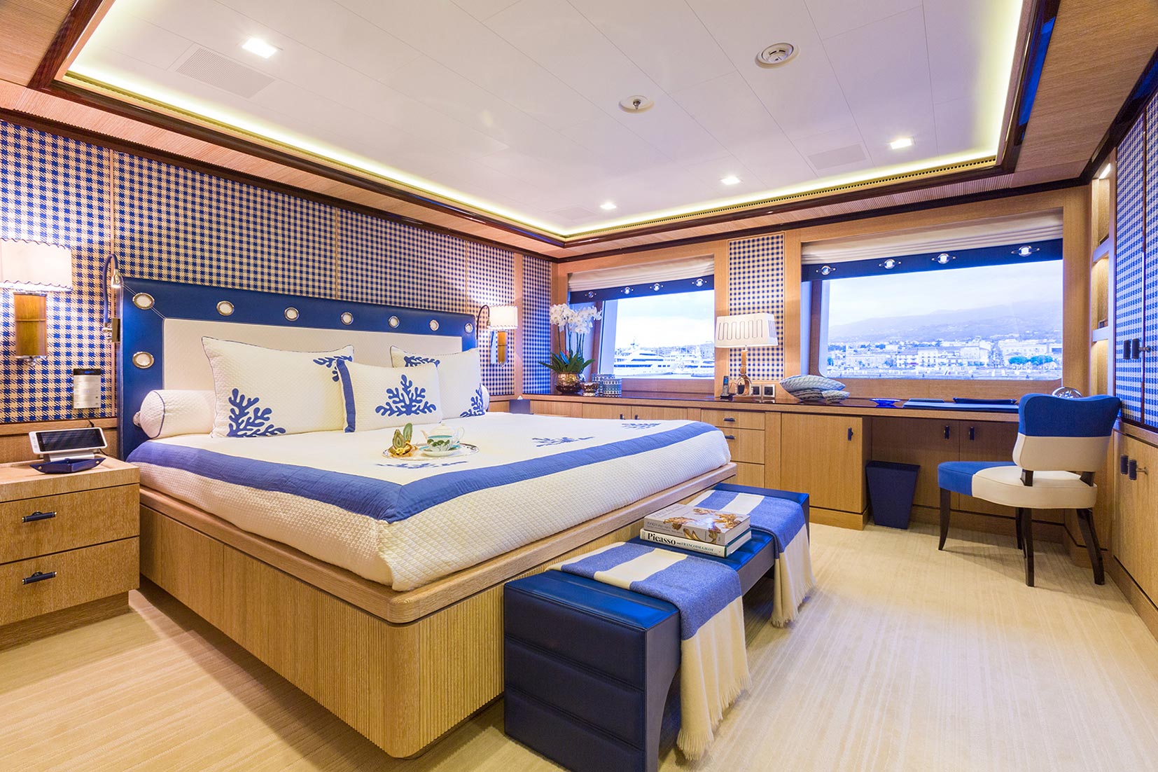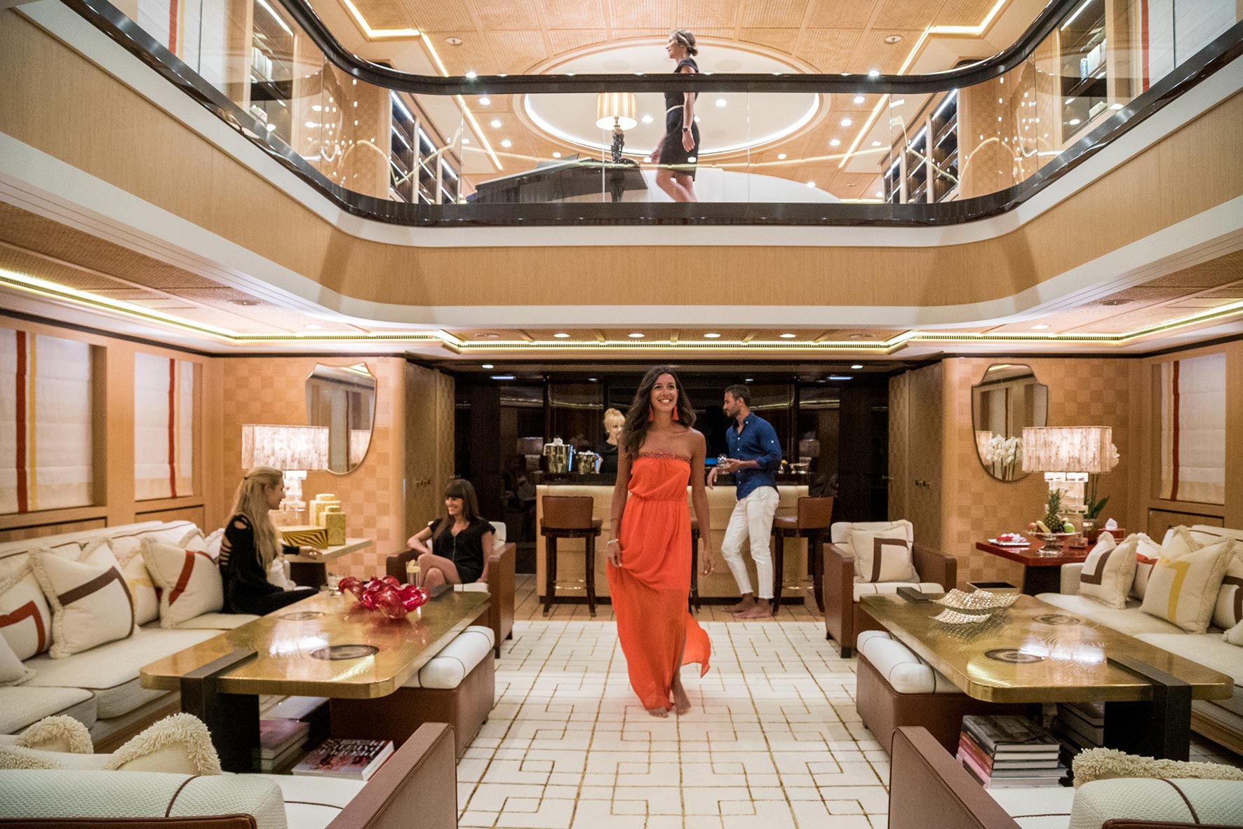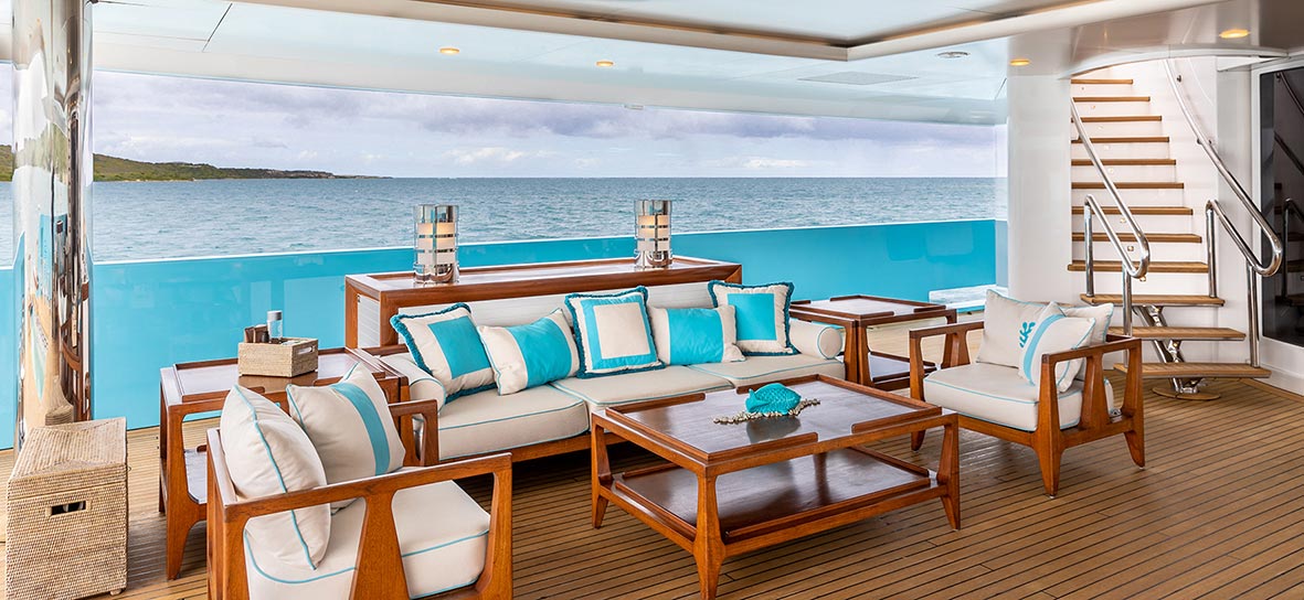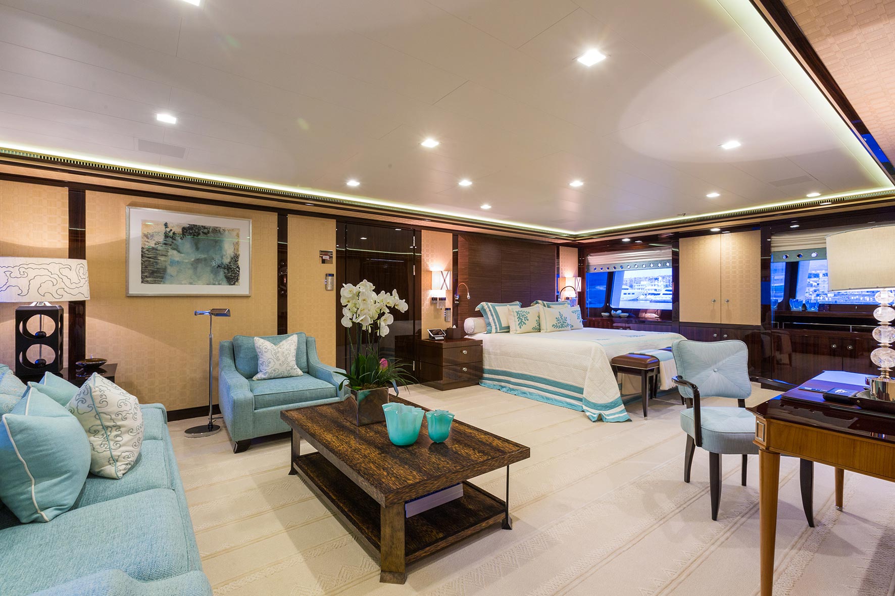 Originally known as project Red Square, her luxurious interior is designed by the renowned Alberto Pinto while Diana Scott of Sterling Scott is responsible for her exterior styling. All four main exterior locations flow harmoniously, providing guests with the best of interactive outdoor living. The pool on the main deck is the perfect daytime setting.