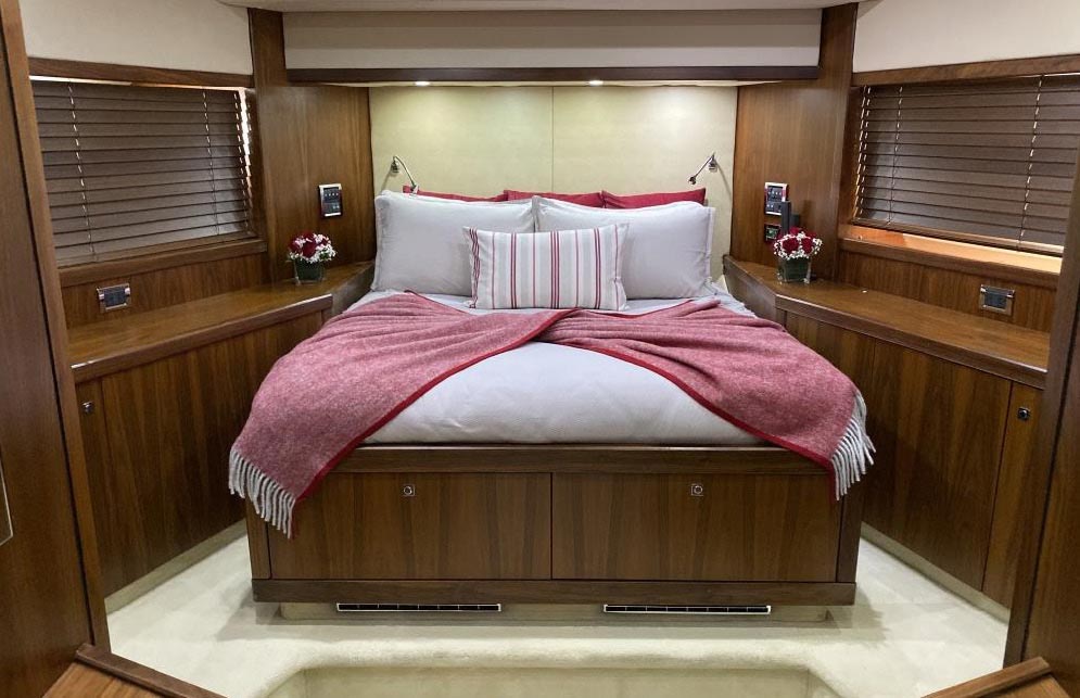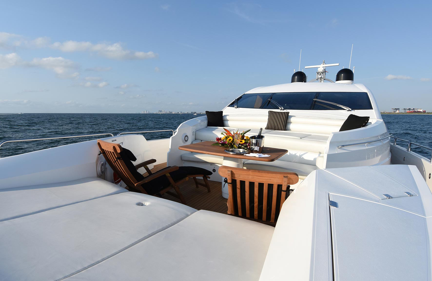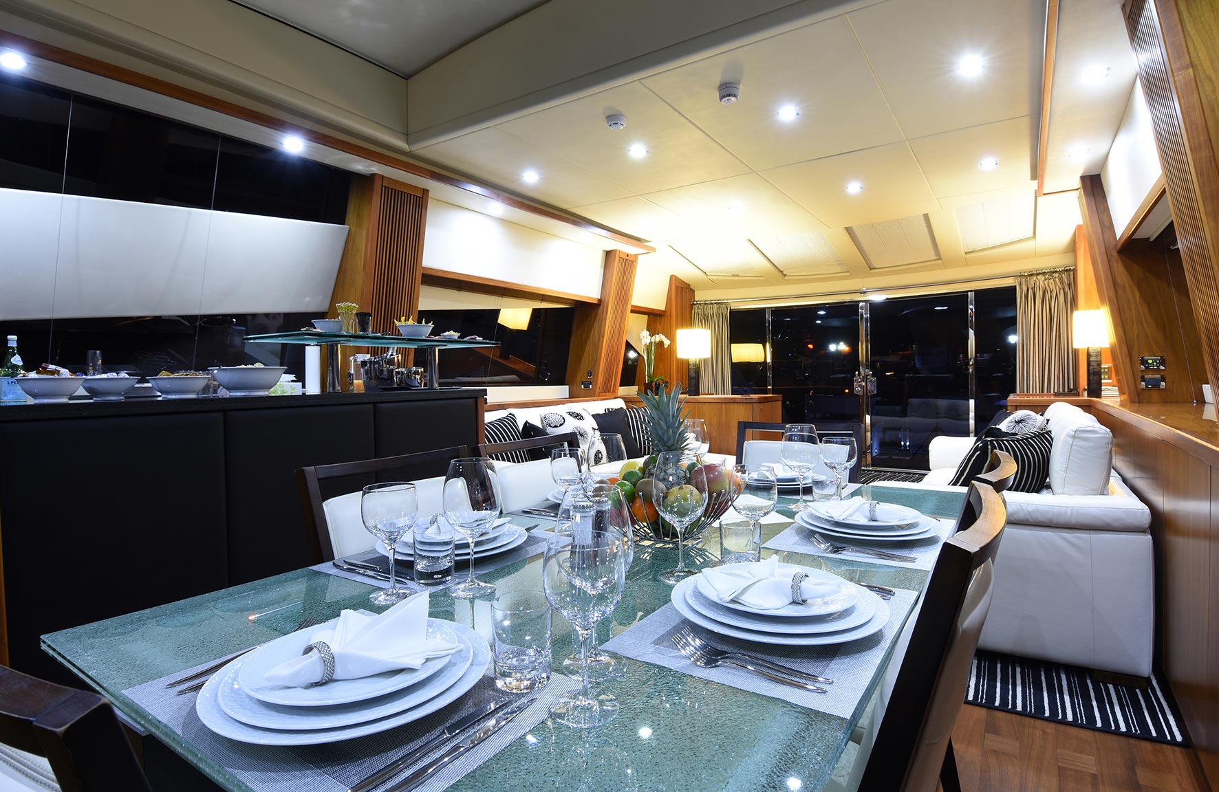 Her elegant, contemporary interior is open and airy showcasing a white and beige décor that exudes relaxation. Double D features a retractable sunroof that brings the outside in and allows natural light to flood the salon.
