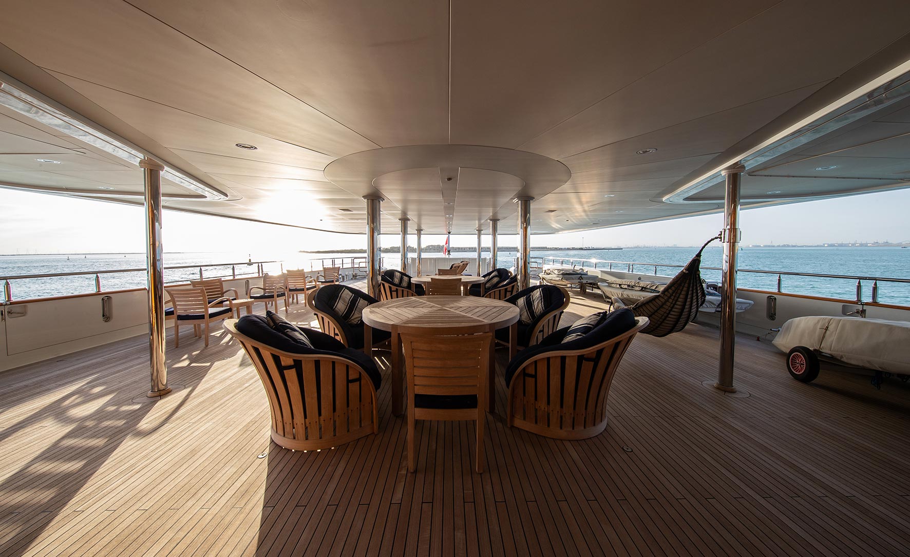 Oceanfast is responsible for her superior engineering and elegant interior design. Previously named Floridian her luxurious interior is designed by Oceanfast and her exterior styling is by Sam Sorgiovanni. Nomad’s interior layout sleeps up to 12 guests in 6 cabins, including a master suite, 2 VIP staterooms, 1 double cabin, 2 twin cabins and 2 pullman beds. She is also capable of carrying up to 14 crew onboard to ensure a relaxed luxury yacht experience.