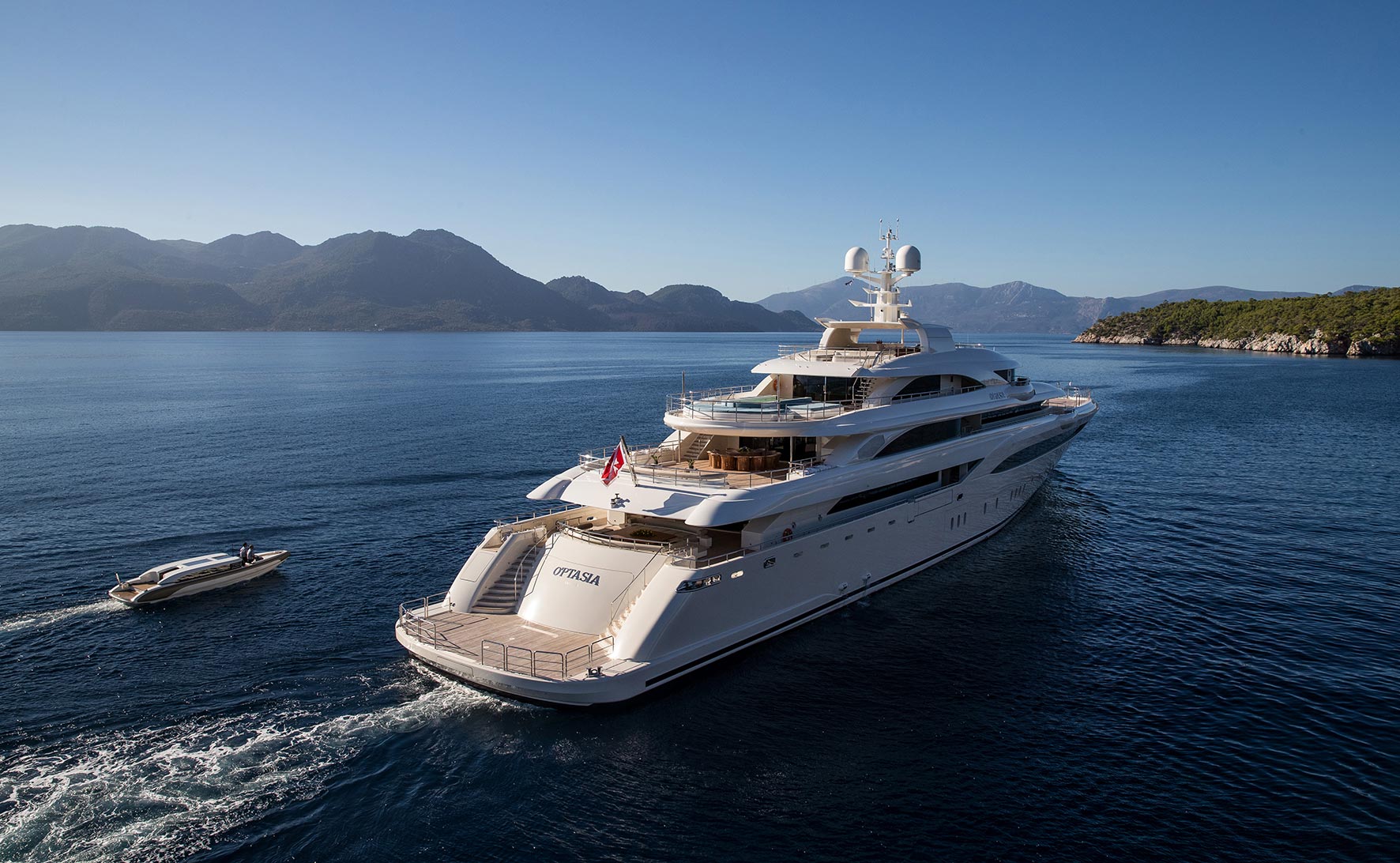 The 278’10 / 85m Custom motor yacht ‘O’Ptasia’ was built in 2018 by Golden Yachts. Studio Vafiadis is responsible for her beautiful exterior and interior design.