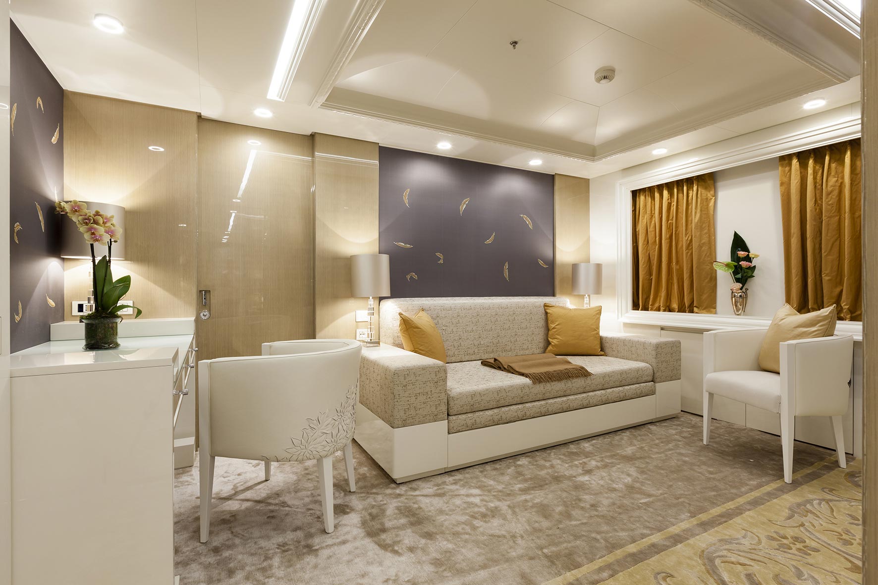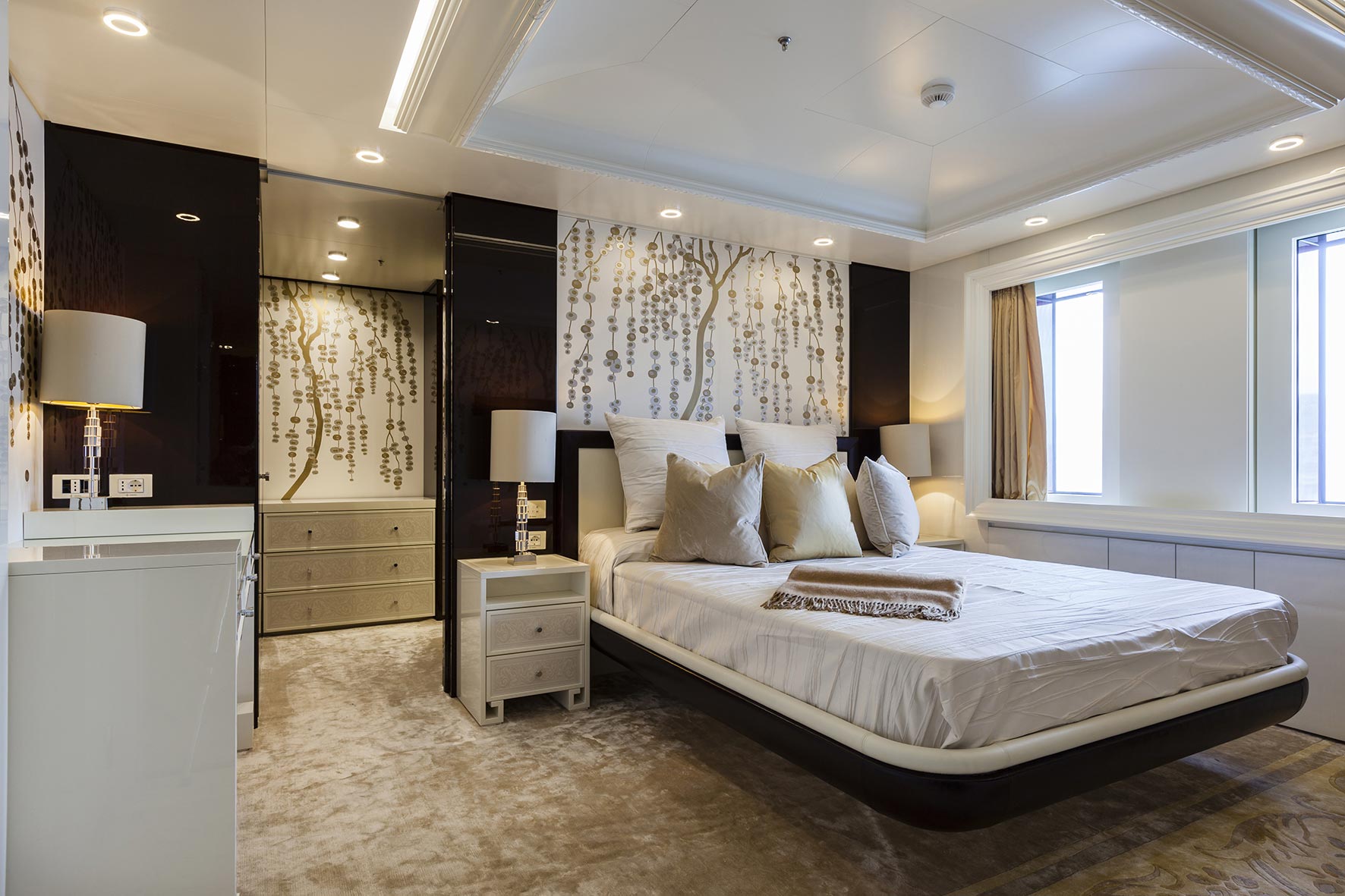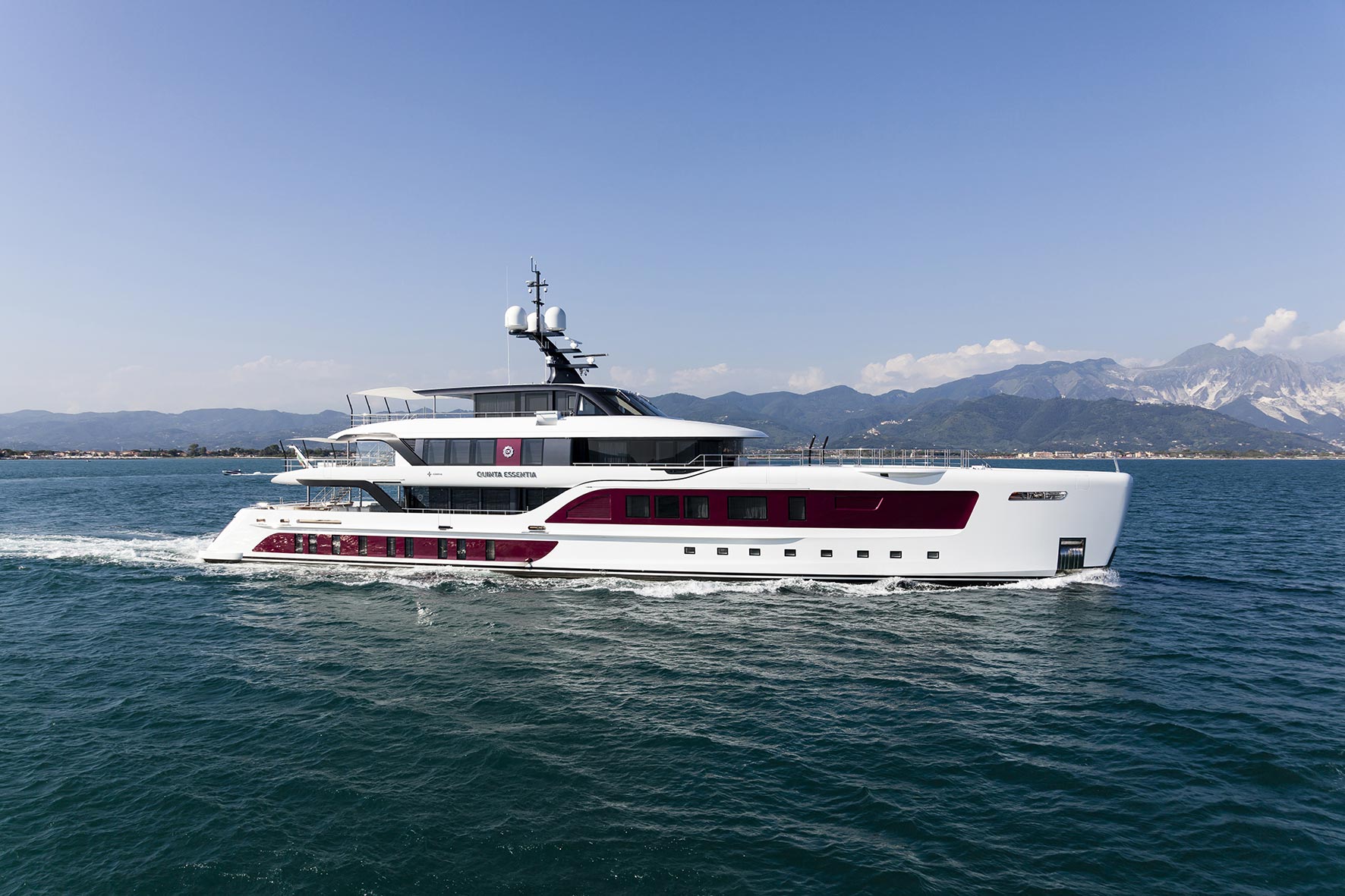 Quinta Essentia’s interior layout sleeps up to 12 guests in 6 cabins, including a master suite, 1 VIP stateroom, 4 double cabins and 2 convertible cabins. She is also capable of carrying up to 13 crew onboard to ensure a relaxed luxury yacht experience. While her engines will let her cruise at 12 knots to give a range of 3500 nm, under her electric power at 9.5 knots, she is able to run silently for 6000nm.