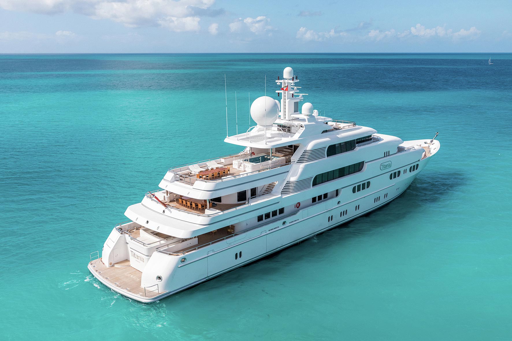 Met with world acclaim on her launch, she continues to be one of the largest and most luxurious superyachts on the charter market, the design being the work of celebrated naval architect Espen Oeino. Titania is a firm favourite among her guests and an enduring charter icon. The very pinnacle of luxury, she fuses opulent design with an effortless indoor-outdoor lifestyle and a wealth of modern amenities.